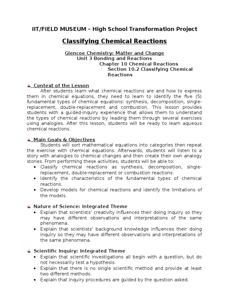 Classifying Chemical Reactions Worksheet Answers Page 63