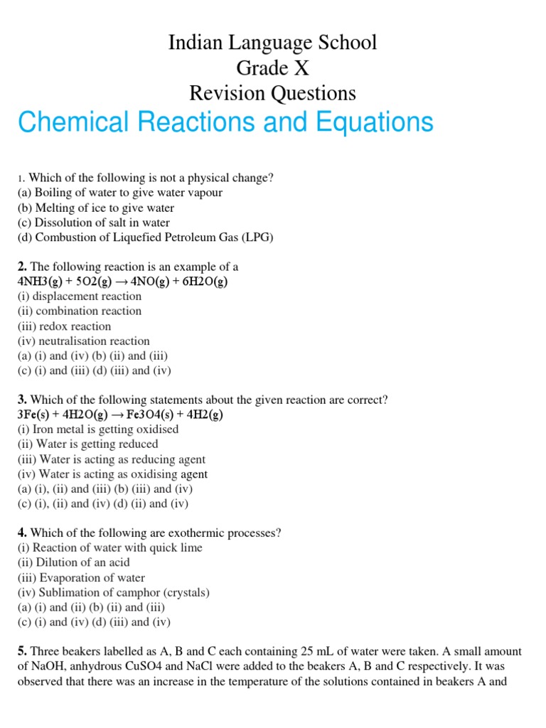 Chemical Reactions And Equations Worksheet With Answers Tessshebaylo
