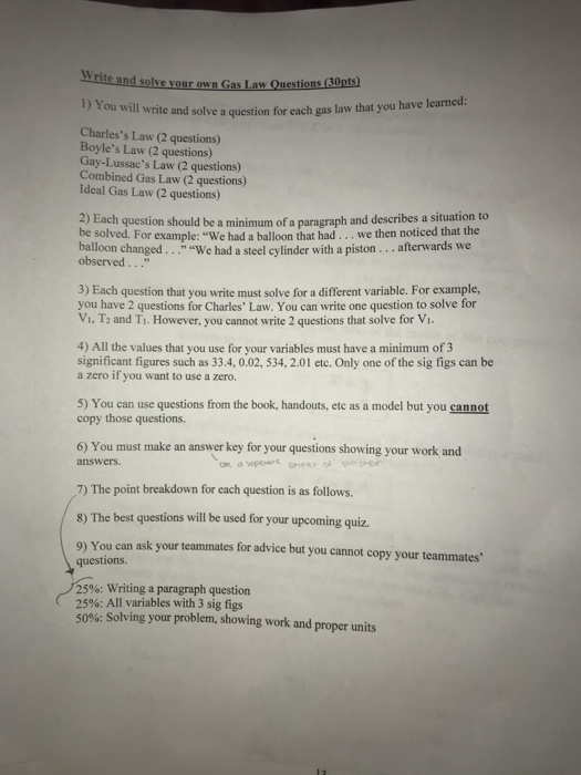 Solved Write And Solve Your Own Gas Law Questions 1 You