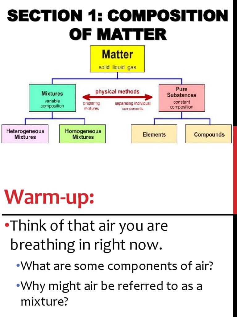 Matter Composition Notes Part A Composition Of Matter 1 Classify