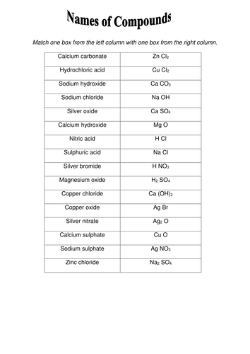 Names And Formula Worksheet Ppt Download