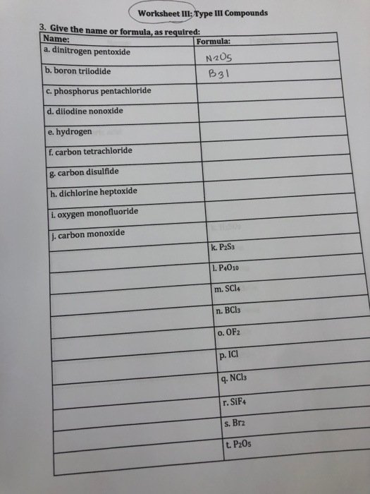 Some of the worksheets for this concept are compound names and formulas work three binary covalent ionic only naming ionic compounds work i writing naming formulas of ionic covalent compounds work writing chemical formulas and naming compounds compounds work compound name. Names and formulas worksheet answers 1. Writing formulas and naming compounds.